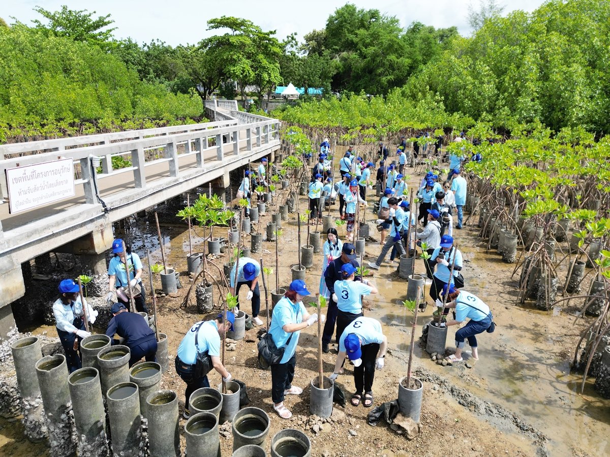 The Naval Special Warfare Command, Royal Thai Fleet (SEAL) has been assigned by the Thai Royal Navy to directly supervising the work of the Museum, has a mission to grow mangrove trees as pioneer plant to protect coastal areas from erosion and it is beneficial for land and marine life, lead to abundance in ecosystems. However, the surrounding area is a coastline with many rocks, strong winds, high sea levels and low in nutrients, causing survival and growth rate of mangrove trees are only 7-10 percent. Therefore, SEAL has assigned Lieutenant Suphrawut Chuchatjaroenpon, who is the first person of the Country to plant mangrove trees by using asbestos cement pipes which the resulting growth rate is increasing to more than 90 percent. The method is to embed asbestos cement pipes in the coast during low tide, then add soil and fertilizer before planting the mangrove trees. This is the chance to increase the growth of mangrove trees and maintain a balanced ecosystem, create habitat and food sources of marine life and reduce Greenhouse Gas emissions.