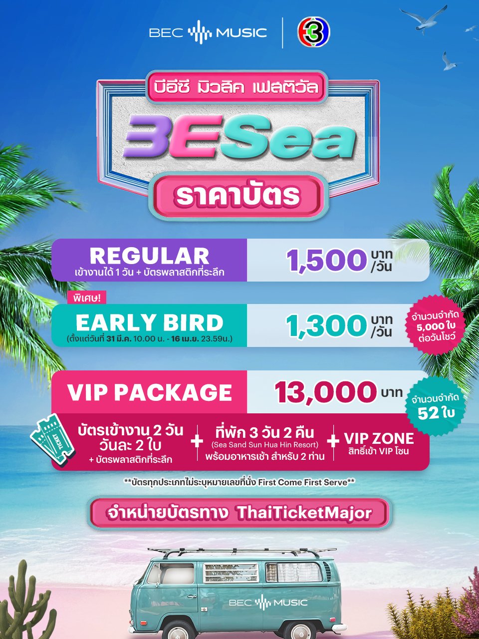 ครั้งแรกของ ช่อง 3 กับ “BESea Music Festival” เปิดเซอร์ไพรส์แรกกับทัพนักร้องชื่อดังในเทศกาลดนตรีสุดฟิน